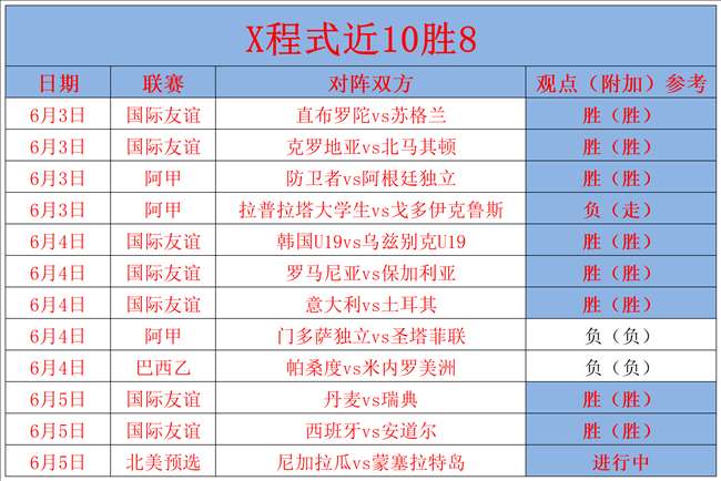昨天3比赛拿下了2场,剩余一场还在进行,整体是10胜8的佳绩,其中国际友谊赛取得7连胜的优秀战绩,笔者状态依旧火热,今天连胜继续。