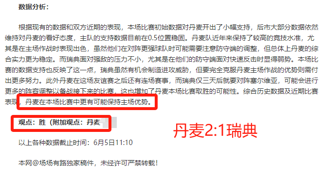 本人作者名场场有路,顾名思义,就是每场进行分析的比赛都是思路,按部就班进行。多年在各大权威外界进行比赛数据归类统计,由于对体育比赛数据有长期的统计经验,根据其规律,研发出一套对规律延伸出来的分析思路,有效率经过长期考验,令人满意。