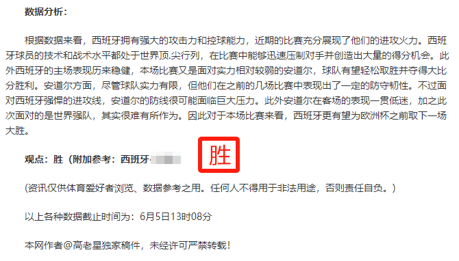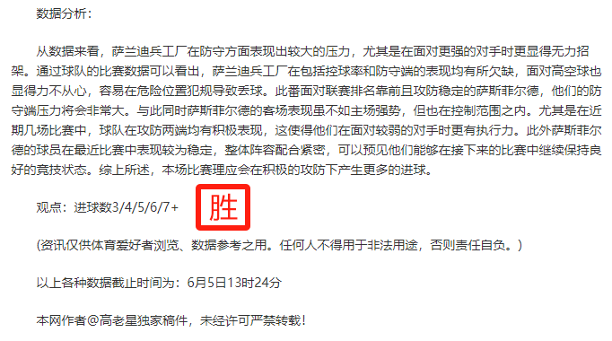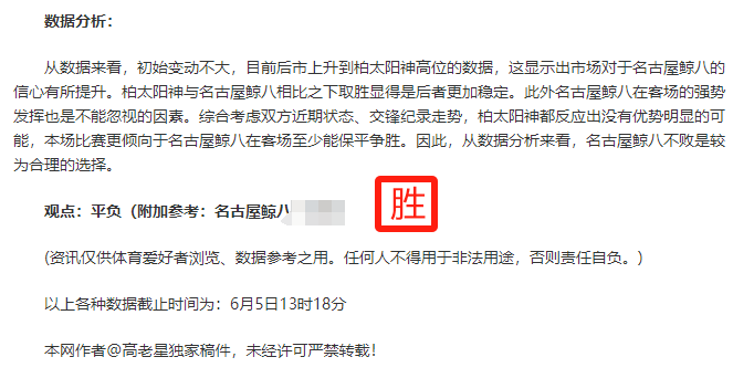 (温馨提示:观点回顾为已完场赛事的统计,并不能代表未来的观点预测结果走势,观点仅为其个人意见,与平.台无关。资讯仅供体育爱好者浏览,并不构成购.彩建议,任何人不得用于非法用途,请广大用户理性消费。)