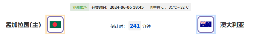 2024年6月6日18:45,世界杯亚.洲区预选赛第二圈的比赛中,孟加拉国将迎战澳大利亚。此役将在孟加拉国主场进行,两支球队将为晋级名额展开激烈争夺。