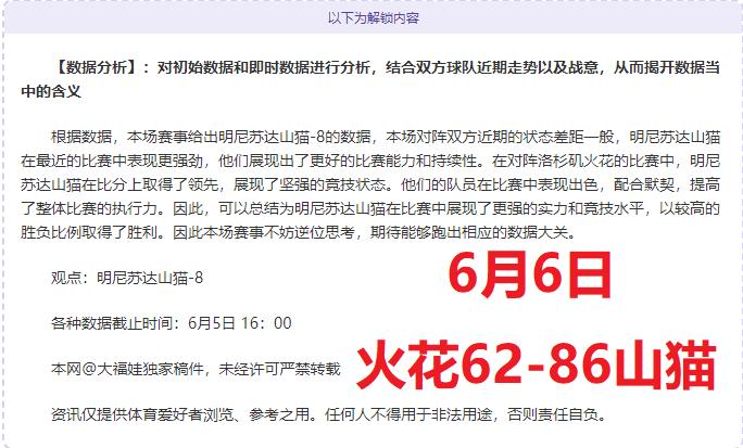 各位球迷们,大家好!我是篮球作家福娃,因对赛事预测有先见之明,人送外号“篮球界股神”。本人自小留学国外,在高中期间接触并热爱上篮球运动,回国后在大学女子篮球队有过2年担任助教的经历,后在机缘巧合下接受澳门巨头的邀请,担任篮球板块的分析师,福娃对数据分析具有别树一帜的风格,贯彻以利用抽象思维逻辑剖析赛事数据,找出隐藏在数据之中的奥秘,从而为球迷们推算出比赛的有利走向。