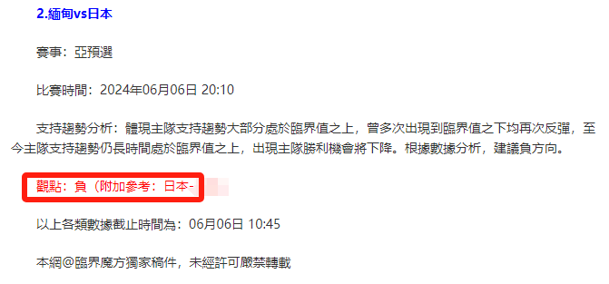 【解鎖內容為以上賽事支持趨勢預測圖展示,以及根據分析預測圖進行相對低機率方向觀點判斷。解鎖內容僅代表個人知識領域觀點,與本網站無關】
