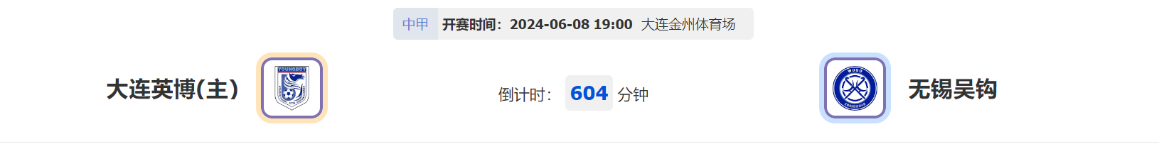 本轮次中甲联赛继续激战,升班马大连英博将坐镇大连梭鱼湾球场对阵保级球队无锡吴钩本场比赛将在北京时间06月08日晚19点00分打响,可以说是比赛的黄金时间,具体情况如何,欢迎关注了解。