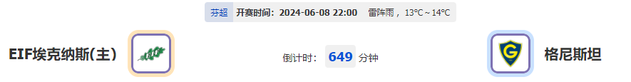 北京时间2024年06月08日22:00,此役是EIF埃克纳斯与格尼斯坦今年的第二场对决。EIF埃克纳斯目前在联赛中尚未取得胜利,此役能否借助主场之力捍卫尊严?而格尼斯坦状态相对较好,此番客访定然不失抢分战意,他们又能否延续胜绩?