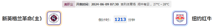 北京时间2024年06月09日07:30,此役是新英格兰革命与纽约红牛今年的第二场对决,新英格兰革命近况不佳,难求一胜,此役能否借主场取胜扭转颓势?而纽约红牛最近表现优异,此番客访定然不失抢胜战意,他们又能否继续保持良好状态?