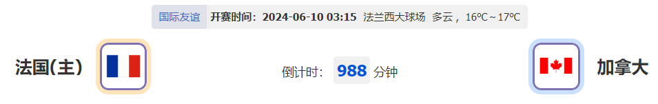 北京时间6月10日03:15,2024赛季国际足球友谊赛继续打响,法国主场迎战加拿大。上轮客场0-4惨败荷兰队的加拿大,本场再次作客面对实力更强的法国队,能否捍卫球队尊严?糖果将从多方面为您解读。
