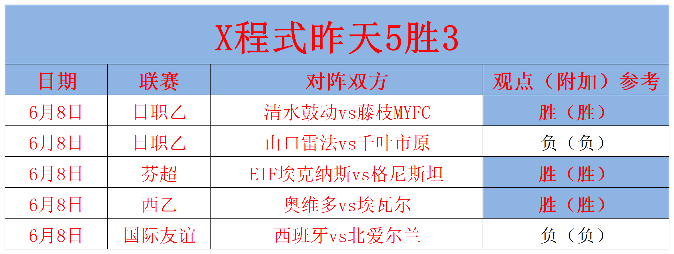 昨天拿下3胜,分别是日职乙清水鼓动vs藤枝MYFC,客队方向打出,芬超EIF埃克纳斯vs格尼斯坦,主队方向打出,以及西乙奥维多vs埃瓦尔,进球数小方向打出,笔者状态正佳,今天继续追击。