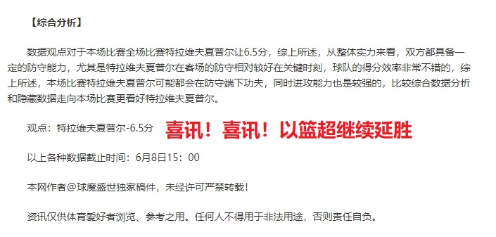 作者在昨日再次拿下了两胜!早场遗憾未能取胜,作为本网老牌作者擅长用独家数据偏离分析拆解其中用意,对数据走向得出情报长期保持高稳定胜利,话不多说,本场比赛再次严选一场优质情报赛事,相关重要情报已收集,期待您的关注一起共享胜果的喜悦。