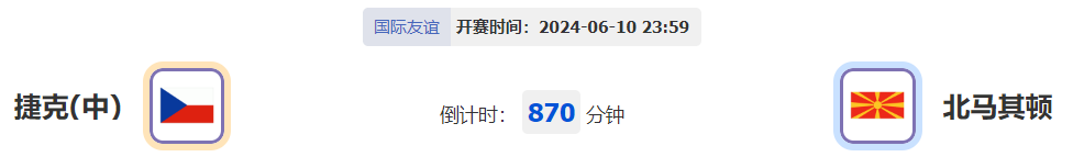 北京时间6月10日23:59,2024年国际足球友谊赛继续打响,捷克主场迎战北马其顿。捷克队在各方面均占据一定优势的情况下,本场坐镇主场面对近期状态低迷的北马其顿,初始数据显然不足,后市强升数据进行造势,这对球队来说十分不利。