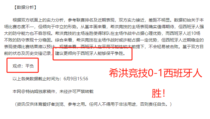 (温馨提示:观点回顾为已完场赛事的统计,并不能代表未来的观点预测结果走势,观点仅为其个人意见,与平.台无关。资讯仅供体育爱好者浏览,并不构成购.彩建议,任何人不得用于非法用途,请广大用户理性消费。)