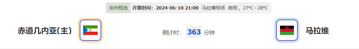 北京时间2024年06月10日21:00,2023-2025 世界杯非洲区预选赛 分组赛迎来一场焦点战,赤道几内亚将在主场马拉博球场迎战马拉维。这场比赛对双方来说都非常重要,赤道几内亚希望能在主场扭转最近的低迷状态,而马拉维则希望继续保持良好的势头,争取小组出线的有利位置。究竟谁能在这场比赛中率先发力?让我们拭目以待。