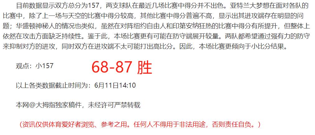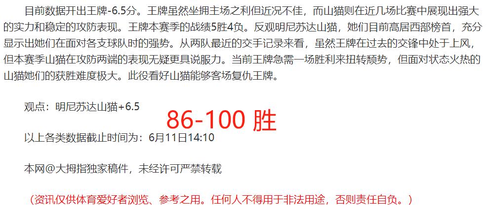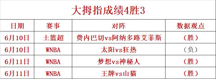 昨日分享的2场比赛2战全胜,WNBA梦想vs神秘人、王牌vs山猫都能顺利打出数据,本人近期成绩4胜3。以下为大家分享一场WNBA赛事,天空vs太阳,敬请期待!