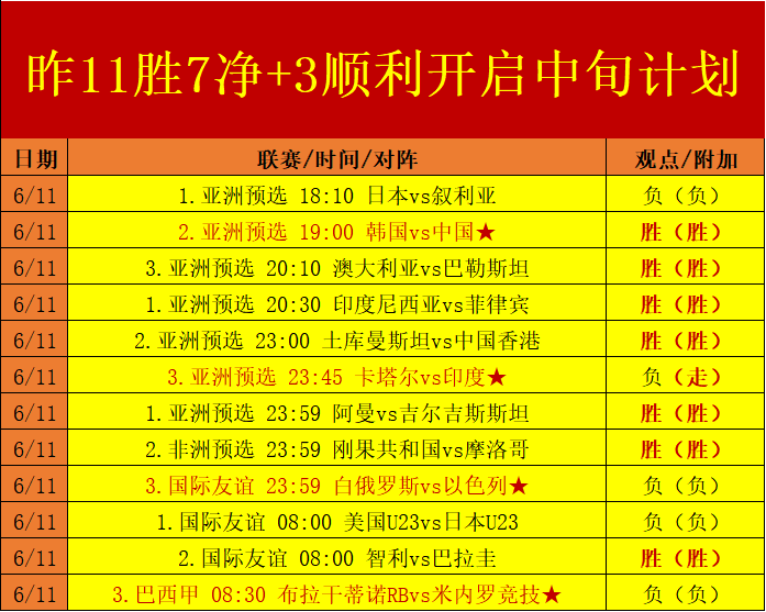 昨日完成赛程取得11胜7优质净+3的进度,顺利以增长脚步开启了6月中旬的数据冲击计划!继续保持对数据模块的精选信任,抽取本日值得关注的焦点赛程组合出击,争取继续突破目标峰值!