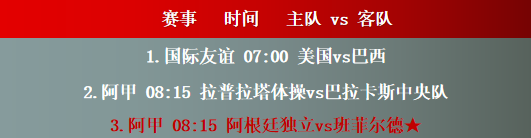 1.美国vs巴西,美国近6场主场取得3胜1平得分表现,攻守端数据发挥处于一个良好的状态,主场作战多次出现零封对手的能力表现,本轮主场迎战对手是巴西,后者近6场作客比赛取得3胜1平得分表现,攻守端数据发挥能进也能失,在持续交出进球表现的同时防线存在的漏洞也是比较明显。