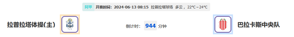 对阵:拉普拉塔体操 vs 巴拉卡斯 中.央队