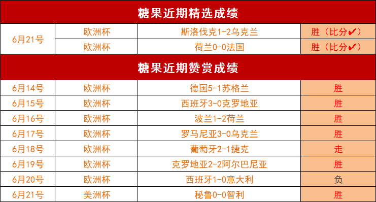 昨天大获全胜!精选的2场欧洲杯双双告捷且比分全部正确!赞赏的美洲杯告捷!今天赛事依旧不错,精选继续带来一场欧洲杯焦点战,继续胜起来!欢迎大家打赏或包周支持,我们按计划稳定取胜!