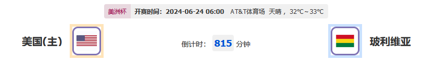 在这场美洲国.家杯分组赛中,美国将在中立场迎战玻利维亚。两队都希望通过这场比赛获得积分,提升小组排名,为晋级下一轮做准备。这场比赛对于双方来说都至关重要,双方都希望在比赛中取得理想的成绩。
