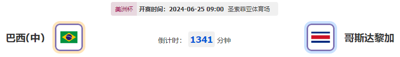 北京时间06月25日09:00,美洲杯分组赛巴西对阵哥斯达黎加,巴西状态较为平稳,能否在此役拿到胜绩?哥斯达黎加近期状态火热,他们能否在此役有所作为?
