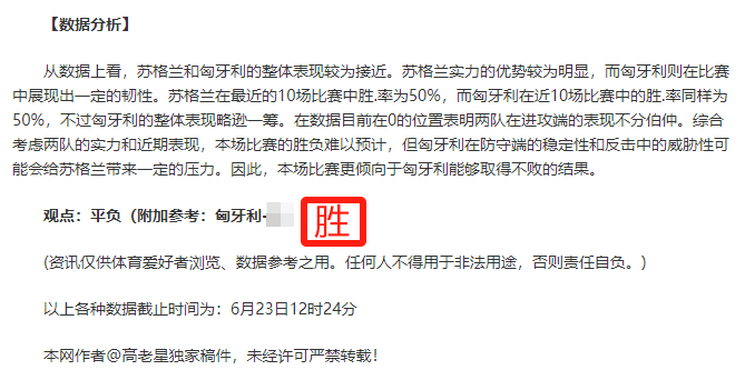 (温馨提示:观点回顾为已完场赛事的统计,并不能代表未来的观点预测结果走势,观点仅为其个人意见,与平.台无关。资讯仅供体育爱好者浏览,并不构成购.彩建议,任何人不得用于非法用途,请广大用户理性消费。)