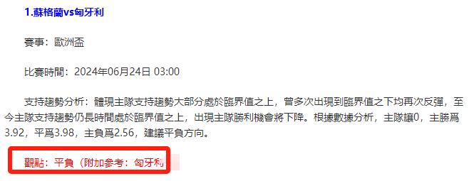 【解鎖內容為以上賽事支持趨勢預測圖展示,以及根據分析預測圖進行相對低機率方向觀點判斷。解鎖內容僅代表個人知識領域觀點,與本網站無關】