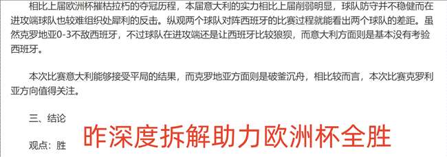 (温馨提示:观点回顾为已完场赛事的统计,并不能代表未来的观点预测结果走势,观点仅为其个人意见,与平.台无关。资讯仅供体育爱好者浏览,并不构成购.彩建议,任何人不得用于非法用途,请广大用户理性消费。)