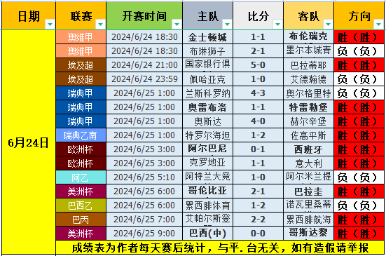 昨天数据表现炸裂,整体15胜10净+5!昨天数据中,早场的表现不错,澳维甲和埃及超一胜一负表现平稳!晚场的欧洲杯和美洲杯都完美的大获全胜拿下,非常的给力!