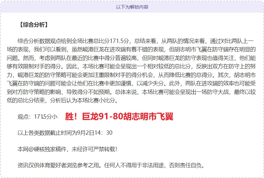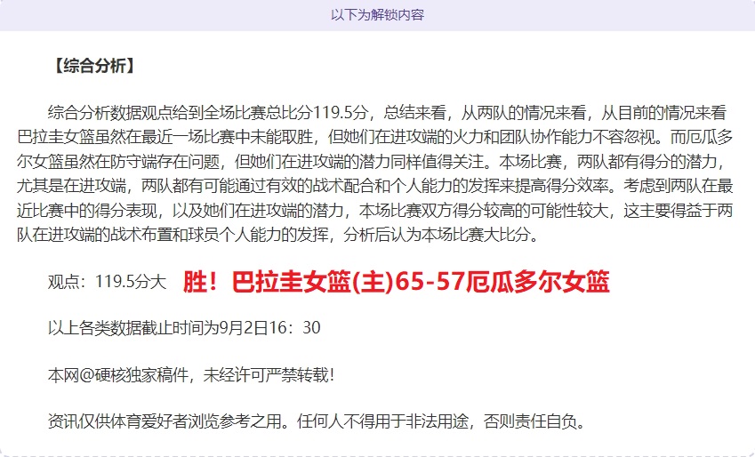 解锁内容包括:综合大数据分析+比赛建议+作者观点