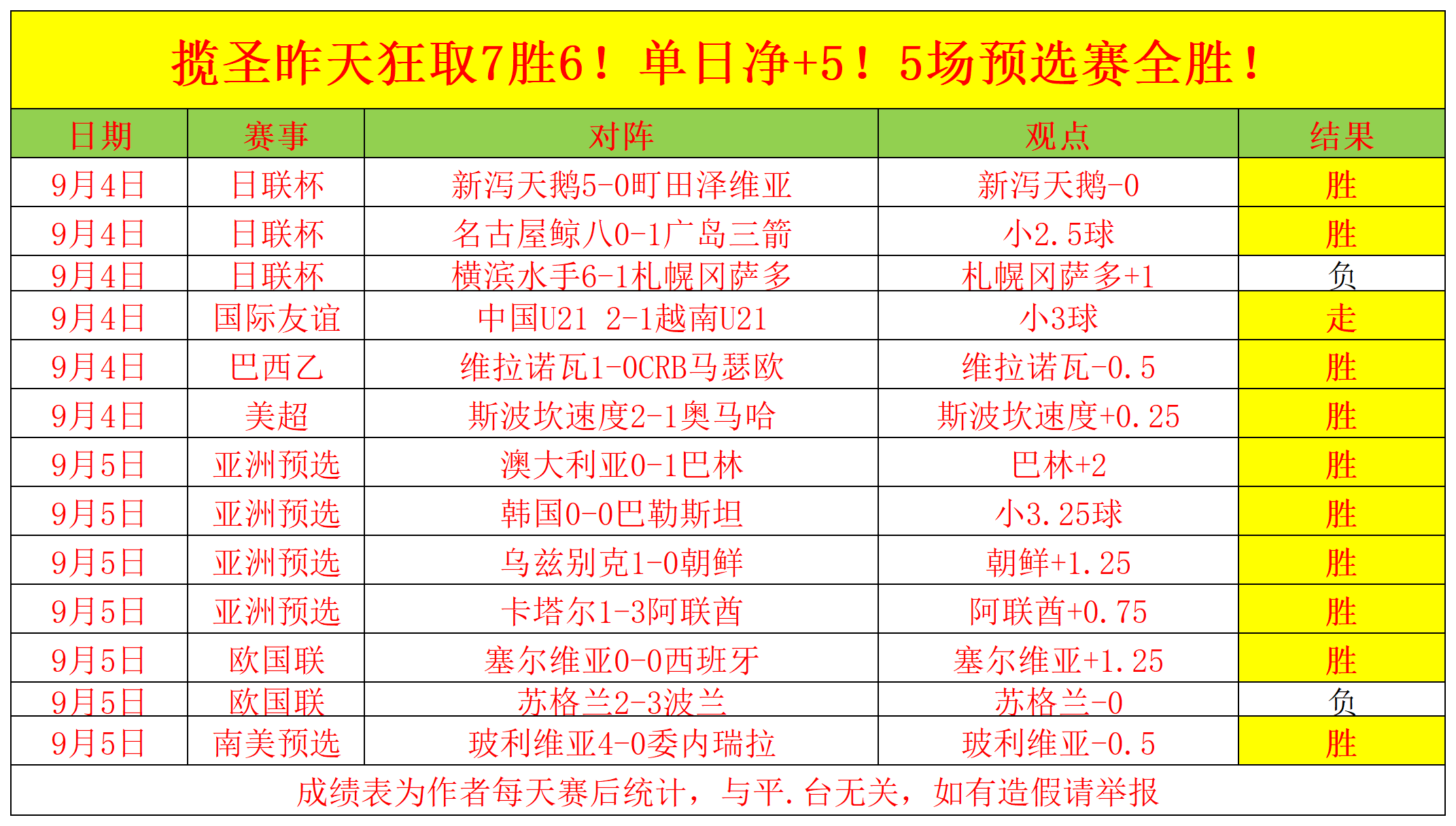 成绩回顾:昨天又是炸裂的一天,7场比赛拿下了6场!!!单日净+5场!!!状态继续飙升!值得称赞的是,昨天5场预选赛全部获胜!此外,笔者的战绩长期稳定,期间或有些许落差,但笔者都能够迅速调整回来,而且笔者近段时间的排名一直名列前茅,这一点就足以证明笔者的实力了,所以大家可以放心地关注,笔者会努力挖掘更精准的赛事分享给大家,感谢大家的支持!