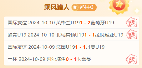 【猎人回顾】近期4胜3+胜两场比分!昨日小联赛土杯打出0-1,比分告捷,而晚间的欧青U19打出1-1,比分再拿下,英格兰U19胜进球数据,今日精研,欢迎关注,力争全胜!