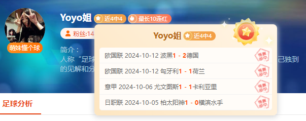 【上期回顾】:昨天公推欧国联匈牙利1-1战平荷兰成功拿下三连胜,而超级重点欧国联方案德国少进球同样彩蛋频出,而近12胜9的表现尚算不错!——今天核心赛事已确认,信心依旧,各位可点击一下【赞赏】按钮给予鼓励,轻松在“站内信”获取当天新鲜信心专场哦!多一份参考离喜悦再近一步,Yoyo将继续率粉粉们继续前行~