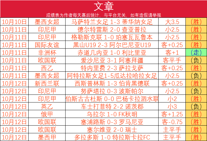 文章16错4,状态持续飙升火热。昨天私推2场是1红1走,马格拉2-2比斯克拉,克罗地亚2-1苏格兰。今天保持好状态,分享一些更精准的情报,争取更稳!昨天2场欧国联全胜,非常顺利,稳稳的,今天有信心!