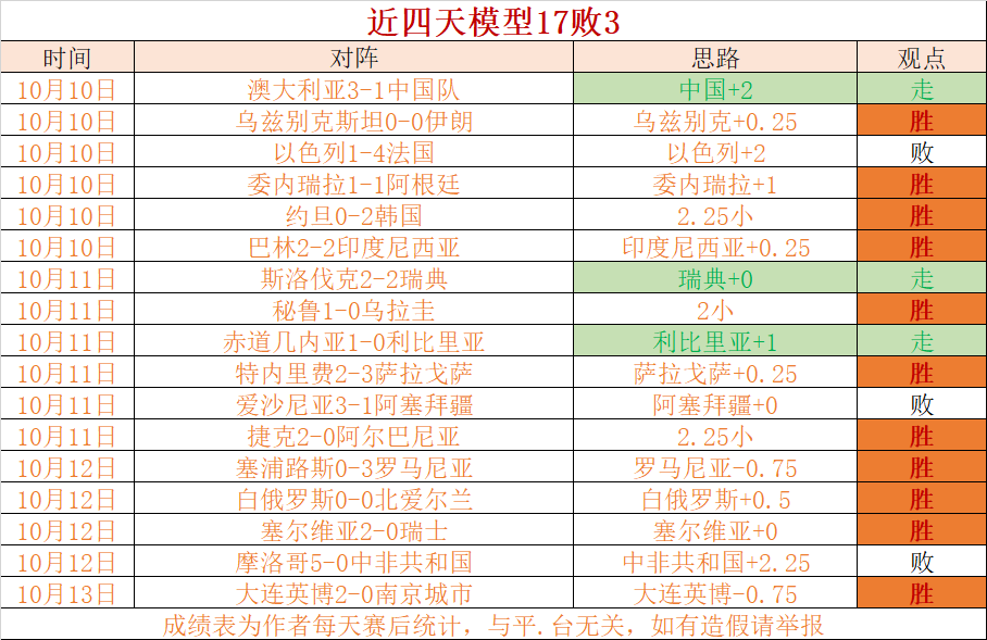 昨天的足球模型发挥依旧出色,中甲模型拿下胜利;近四天模型17败3!这成绩我自认为是满意的。今天的模型已经准备好了,朋友们千万别错过。