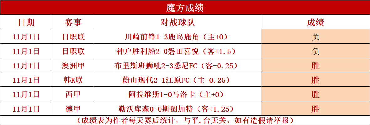 【成绩回顾】魔方昨日完场赛事保持正向,其中澳韩专场以及五大联赛清版全勝。今日针对中超、澳洲甲、五大联赛以及美职业进行深研。