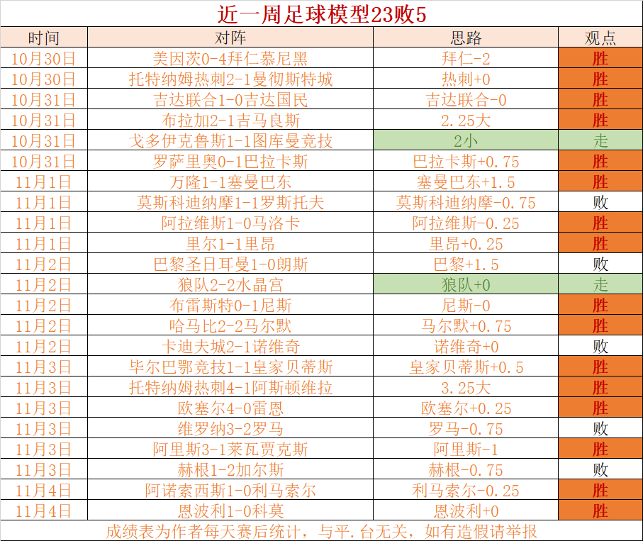 昨天的足球模型发挥也是很不错,2场胜2,近几天的足球模型保持不错的稳定,朋友们可关注一下我的足球模型。
