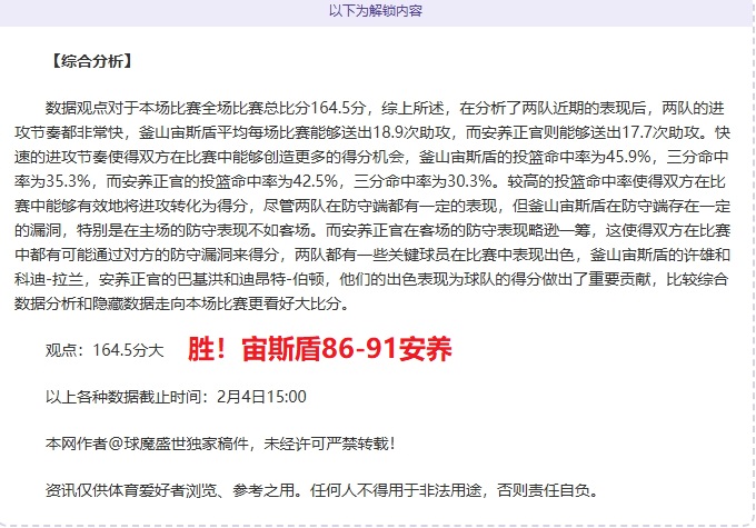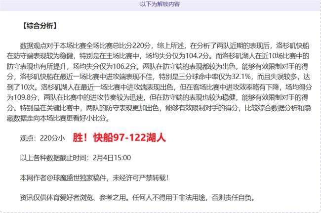 解锁内容包括:综合大数据分析+比赛建议+作者观点