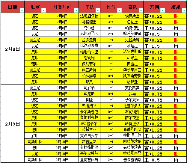 昨天表现炸裂,整体13胜8净+3!昨天数据中,德乙的表现非常的不错,整体3胜2!奥甲的表现则是非常的炸裂,2场都完美的拿下!而捷甲和哥斯甲则是一胜一负表现平稳!