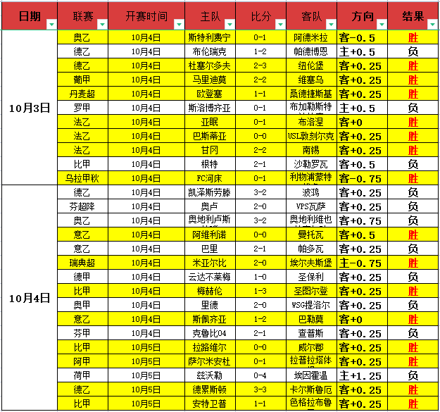 昨天表现不错!昨天数据中,意乙的表现非常的不错,整体拿下3胜2,非常的给力!而比甲的表现则是非常的炸裂,3场完美的打出,非常的精彩!当然阿甲和瑞典超的表现都非常的出色,完美的打出,非常的精彩!德乙则是一胜一负表现平稳!