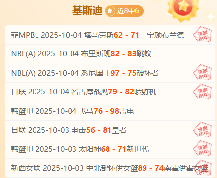【成绩回顾】近8胜6,昨日NBL(A)、日联、菲m赛获得胜利,精选比赛拆解本期再创连胜新高度,篮球方向连胜呈现非同凡响,拆解精准比赛继续收获连胜,篮球板块拆解数据勇往直前,资深篮球爱好者,用独立方式拆解赛事再为大家奉上。以下再为大家分享一场精彩赛事,敬请期待!