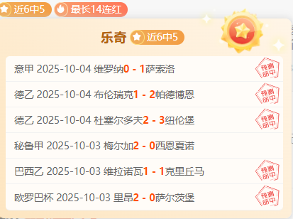 成绩回顾:6胜5,成绩也是相当火热,且比较稳定;今天比赛内容也相当丰富,笔者继续为大家深研信心的比赛;大家可以持续关注乐奇了解赛事的走向。