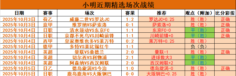 【上期回顾】早场精选2场+彩蛋1场全胜!昨9场观点对8场,文章莱万特、曼联打出。阿森纳、东京、川崎、切尔西大打平,近11中10;彩蛋柏打出,天鹅平。昨只错1场正确率非常不错,今开市第一天,继续正向上分,加油!