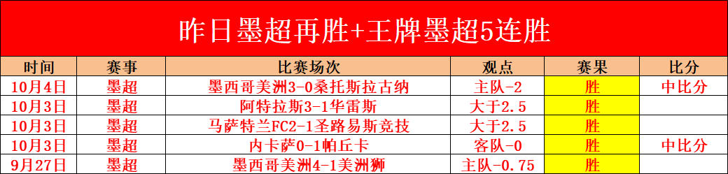 昨唯一墨超再胜比分+墨超5连胜!王牌墨超强