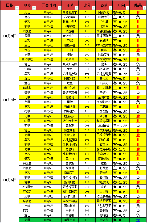 昨天表现不错!整体拿下17胜9净+1!昨天数据中,德乙的表现非常的出色,完美的大胜拿下,非常的精彩!而奥乙、德甲、芬超、荷甲和希腊超的表现也非常的出色,完美的大胜!意乙则是一胜一负表现平稳!