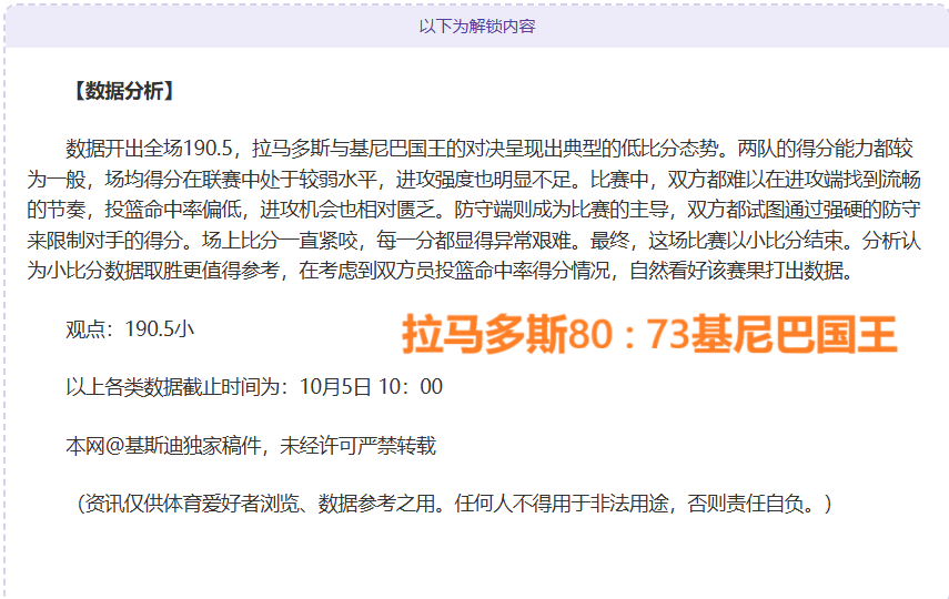 【成绩回顾】近13胜8,昨日联、菲赛获胜,精选比赛拆解本期再创连胜新高度,篮球方向连胜呈现非同凡响,拆解精准比赛继续收获连胜,篮球板块拆解数据勇往直前,资深篮球爱好者,用独立方式拆解赛事再为大家奉上。以下再为大家分享一场精彩赛事,敬请期待!