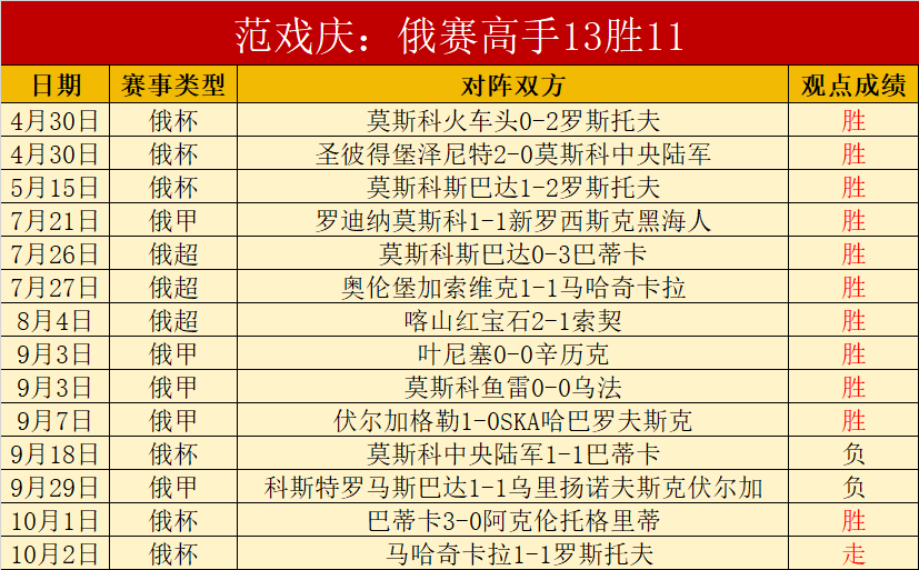 俄赛13胜11,非常出色的发挥。昨天5胜4,12天精彩10天,合计胜+12,胜+增长速度值得认可。9月15日打出10连胜,17连胜记录也是在近期出现的,大胜是频繁出现的高超实力。