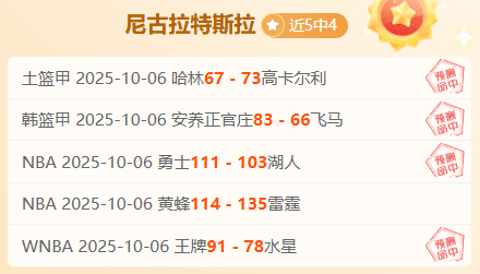最近更新:2025-10-07 02:06 NBA近8胜率75%近5中4