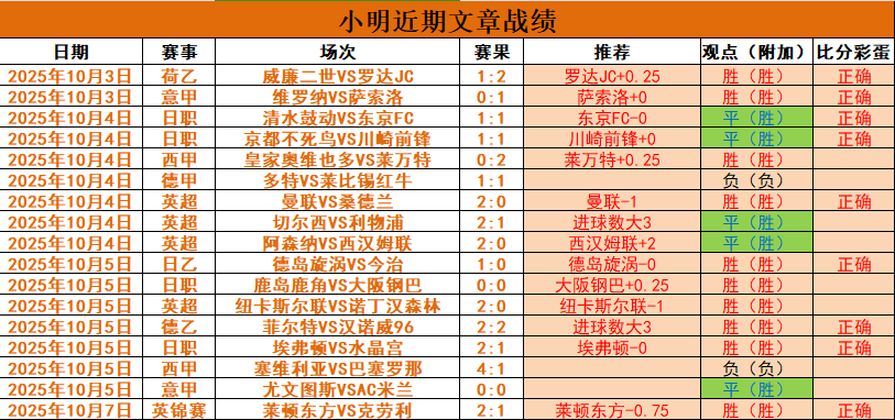 【上期回顾】状态超神,拿下全胜!昨英锦赛1场方向+比分成功打出,近17中15表现完美!昨比赛只打1场成功拿下,本来还有几场,求稳没发。今比赛不多,而且国际比赛日比较难猜,争取继续正向上分,加油!