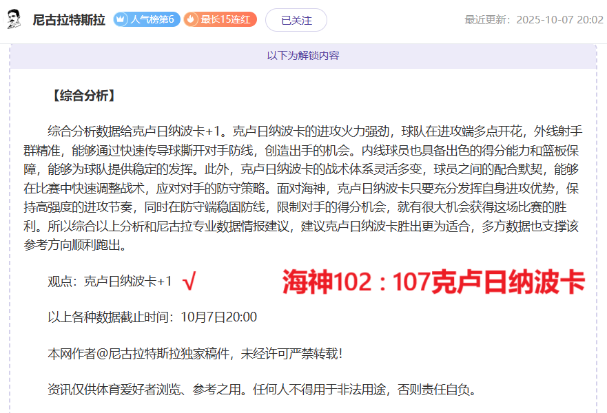 【成绩回顾】昨拿下二战胜,NBA和昨夜场胜,今天情报数据再升级冲击连胜,尼古拉资深作者情报解读再有方法,信心强项情报解读连胜赛事再次出发,长期解读惊喜不断,此前作者创下4次双位数胜战绩,掌握着一手赛事资深情报,本期继续分享充满奇妙体育赛事,敬请大家持续关注!!