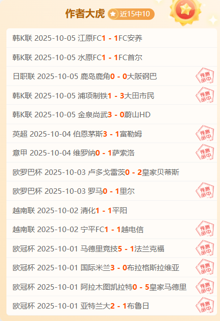 成绩回顾:近15胜10,状态还是相当不俗的,今天只分享信心比赛给大伙,希望大家持续关注作者大虎。