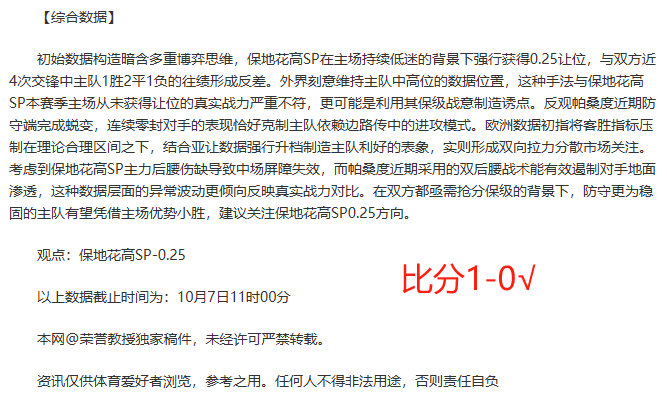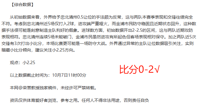 本人荣誉教授,是名资深足球前锋,涉及足球领域近二十年,擅长结合数据与球赛性质球队状况动态深入分析,精准预判。