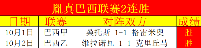 巴西联赛2连胜,精彩美洲赛事继续来袭!